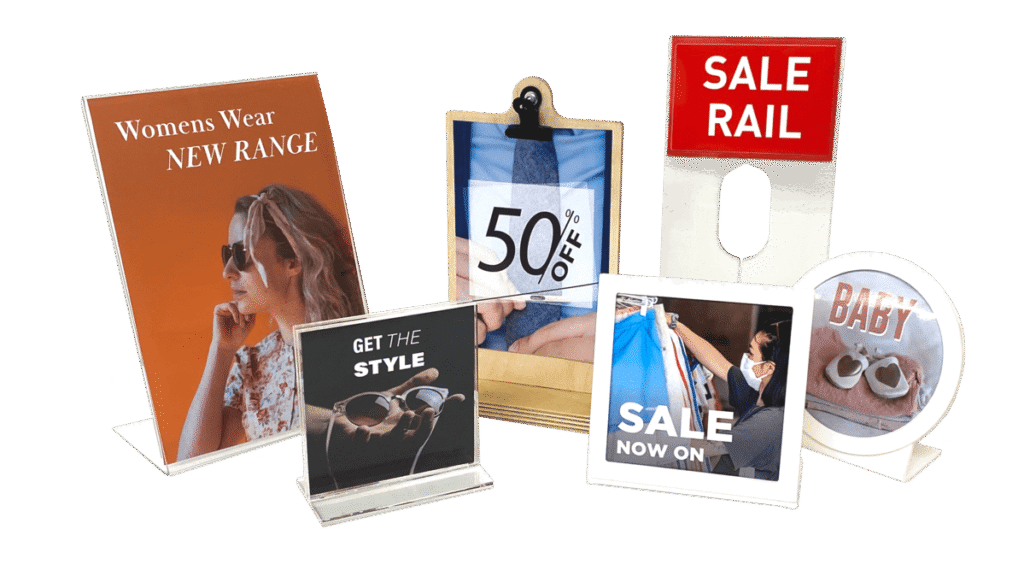 In addition to our patented and best-selling end-of-arm sign holders, take a look at the wide range of standard and custom POS items we have to offer too.